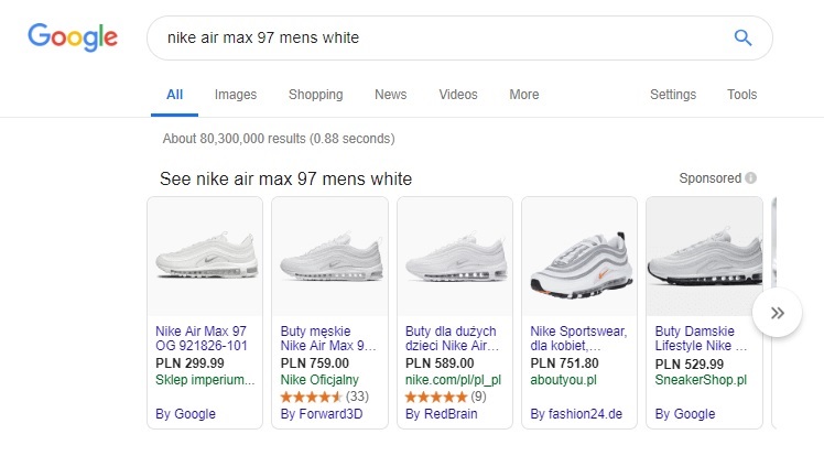 Showcase Shopping is one of the tools created by Google within the Google Ads. The ads created as Showcase Shopping ads, are what shoppers can see at the top of the google search results when they type e.g. “winter shoes” or “dining table“. They have not made a decision yet which brand or model would satisfy their needs nor what features of the product they are looking for. Thanks to Google Showcase Shopping ads, advertisers can appear in such search results, show a few photos of their products and possibly interest them enough to purchase a product.