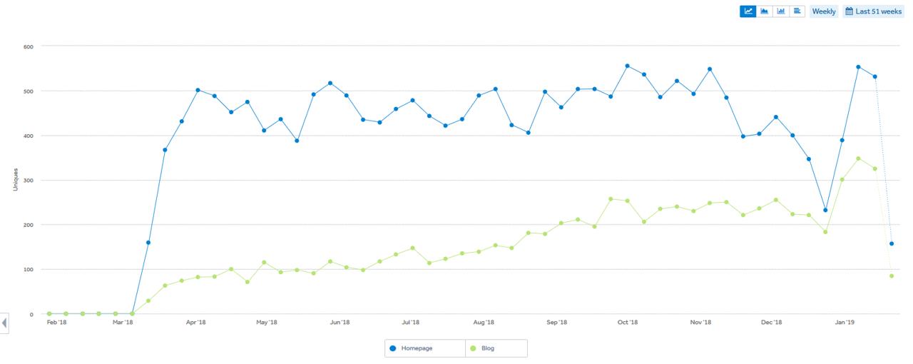 Such posts have become particularly important recently and their value in search results has increased significantly. Here’s an example of how this strategy affected the number of users’ registrations for one of the startups mentioned above. You can see that the number of registrations from a blog post (blue line) significantly exceeded the number coming from the home page (green line). This situation is typical for startups, which use content marketing as their main tool for user acquisition.