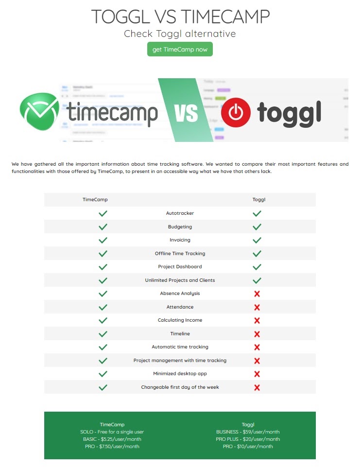 In the case of a mature industry, which people associate with certain, well-known tools and software, it’s a good idea to create comparisons between them. Popular Google queries are then “software 1 vs. software 2” or “alternative for software 1”. Here’s an example of how to create such content: