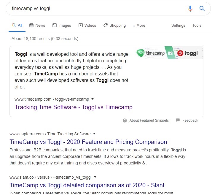 In this case, Google promotes this comparison site in search results by placing it on the so-called position 0 (Featured Snippet).