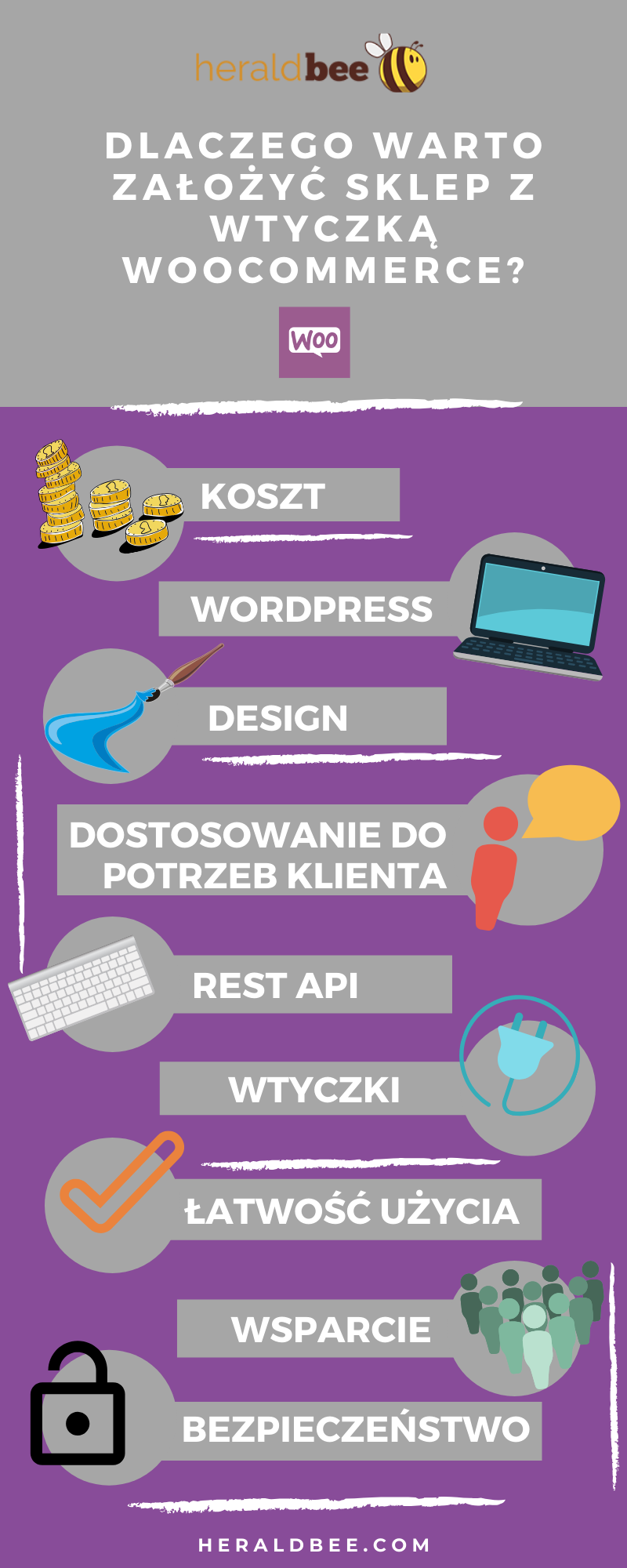 Jesteśmy przekonani, że takie cechy jak funkcjonalność, dostosowanie do własnych potrzeb, nieograniczona ilość danych, czy bezpieczeństwo są tym czego szukają właściciele sklepów internetowych. WooCommerce daje możliwość stworzenia w pełni funkcjonalnego sklepu i oferuje wszystkie najważniejsze udogodnienia. Z pewnością spełni Wasze wysokie oczekiwania, a jednocześnie zaskoczy Was łatwością w obsłudze i nieograniczonymi zasobami.