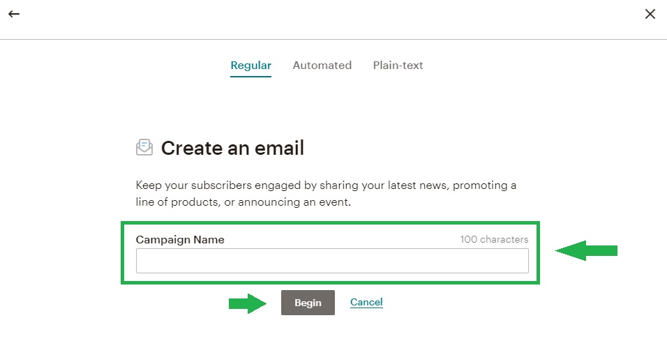 3. Zostaniesz przeniesiony do kolejnej strony. Na początku musisz wpisać nazwę kampanii (Campaign Name) oraz kliknąć Begin (Rozpocznij).